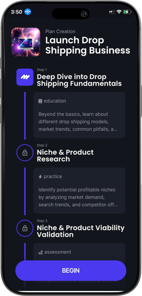 AI creates your personal plan based on top recent data – with full lessons or action items for every step